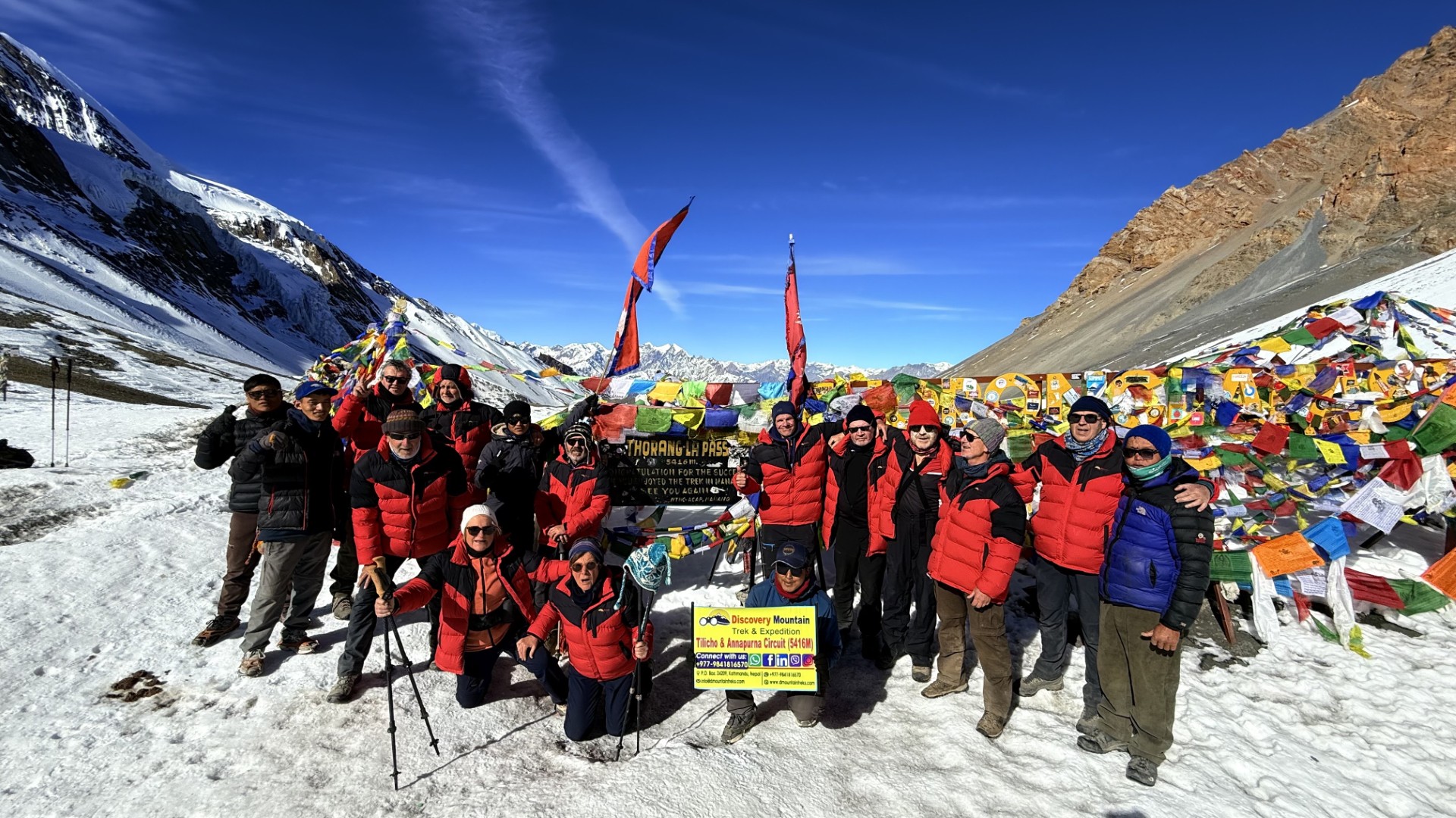 Le Discovery Mountain Trek vous emmène dans une navigation périphérique du massif de l’Annapurna au centre du Népal et Le lac Tilicho. Le Lac Tilicho est un magnifique lac glaciaire situé dans la région de l’Annapurna au Népal avec le l’altitude a 4910m, célèbre pour ses eaux turquoise à couper le souffle se détachant sur les imposants sommets himalayens comme le Tilicho ce qui en fait un point fort exigeant mais gratifiant du trek du circuit de l’Annapurna. Au cours de cette randonnée, nous traverserons le col du Thorong-La à 5416 mètres, l’un des plus hauts cols de montagne du monde. Nous nous approcherons également de la gorge la plus profonde du monde – les gorges de Kali-Gandaki. Nous allons profiter du paysage désertique de la vallée de Manang, visiter le temple de Muktinath et nous promener dans des paysages en constante évolution de la région de l’Annapurna.