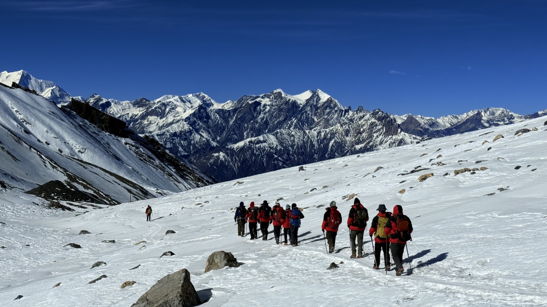 Les chutes de neige abondantes rendent parfois impraticables plusieurs cols de haute altitude. Le trekking est toujours possible, mais à des altitudes inférieures à 4000 m à cause du froid. Le temps est très clair et la visibilité sur les montagnes excellente.