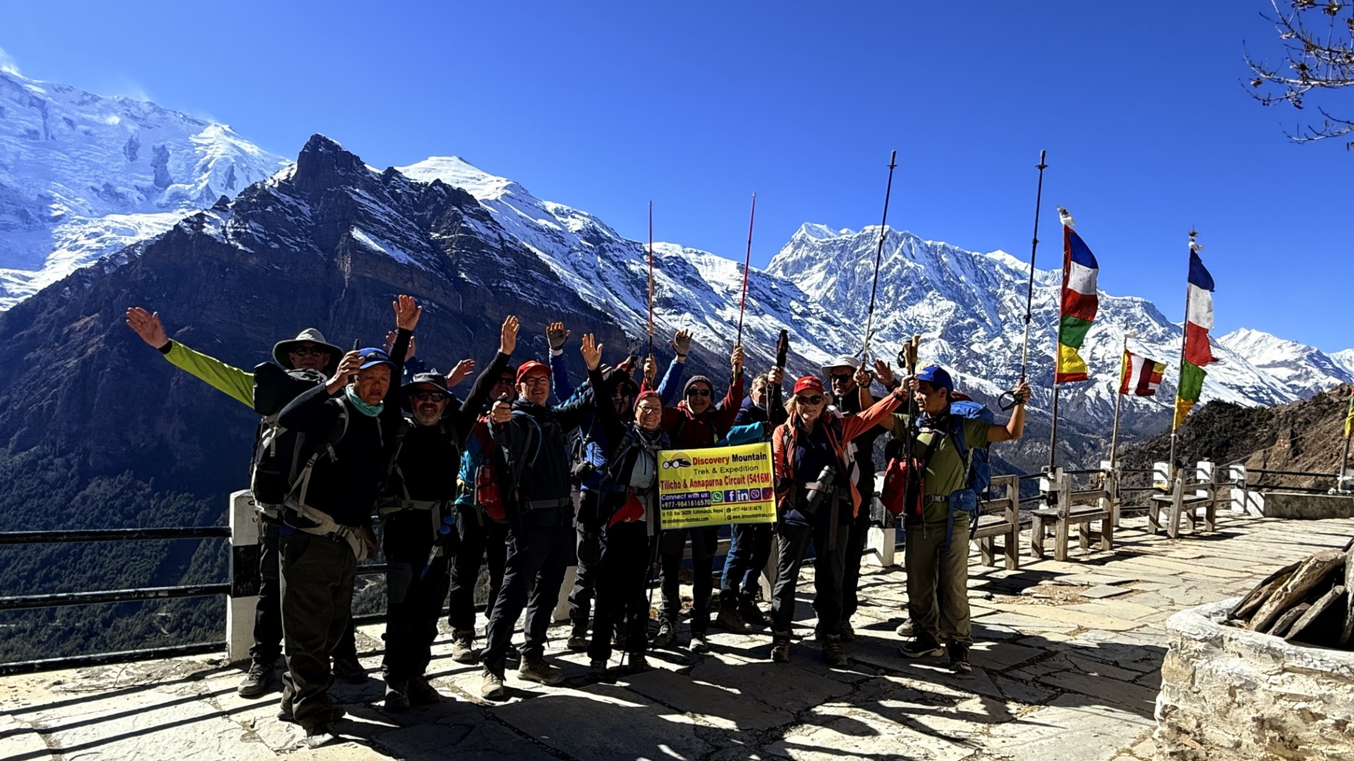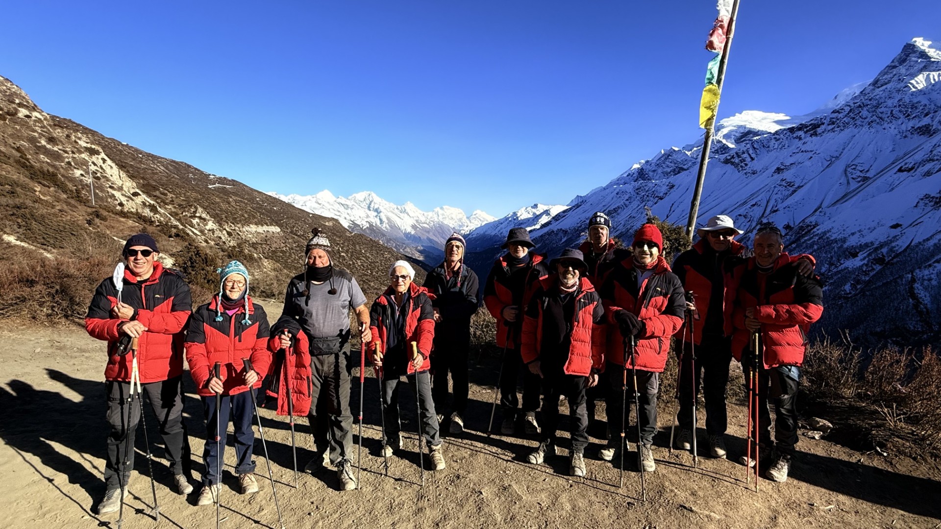 Un trek au Népal… l’idée est parti d’un apéro anniversaire entre copains Pour moi c’est une première. J’ai découvert un pays grandiose et magnifique animé d’une culture extraordinairement riche Mais la chose qui m’a encore plus marqué c’est l’accueil et l’encadrement de notre groupe par « Discovery Mountain» Une équipe de 8 personnes 5 porteurs, 2 assistants et un Guide …. Et quel guide Chhiri patron de Discovery parlant français, passionné, perfectionniste, attentionné…et d’une sincère gentillesse a l’image de toute son équipe, Porteurs et assistants Présents en permanence pour nous aider, nous servir, nous réconforter et toujours avec le sourire… Très rapidement une ambiance de complicité très amicale s’installe autour d’un chant Népalais improvisé au sommet d’un col à 5400 mètres d’altitude ou autour d’un verre dans un lodge le soir après le dîner…